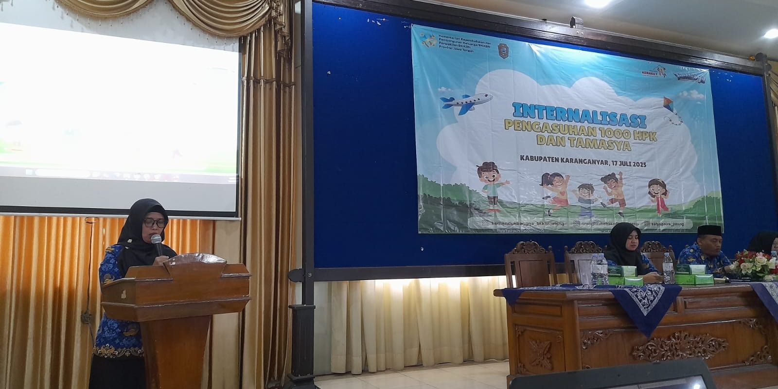 Pada hari Kamis, 17 Juli 2025, pukul 09.30 WIB Dinas Pemeberdayaan Masyarakat dan Desa Karanganyar ( Dispermades) mengikuti Kegiatan Internalisasi Pengasuhan 1000 HPK Untuk Mencegah Stunting. Kegiatan ini berlangsung di Aula Atas Panti Asuhan Aisyiyah Karanganyar yang di hadiri oleh Perwakilan Kemendukbangga/BKKBN Provinsi Jawa Tengah, Kepala DP3APPKB, Sekretaris DP3APPKB, Perwakilan Dinas Pendidikan, Perwakilan TP-PKK, Perwakilan TPA/PAUD, Perwakilan Orang Tua Baduta. Acara internalisasi ini bertujuan untuk meningkatkan pemahaman dan kesadaran orang tua terutama peran Ayah dalam periode 1000 HPK untuk mencegah stunting. mengenai pentingnya pemenuhan gizi, pola asuh yang tepat, serta stimulasi perkembangan anak pada periode emas 1000 HPK. Kegiatan juga diisi dengan sesi diskusi, edukasi kesehatan, dan penyampaian materi dari narasumber ahli di bidang kesehatan ibu dan anak.